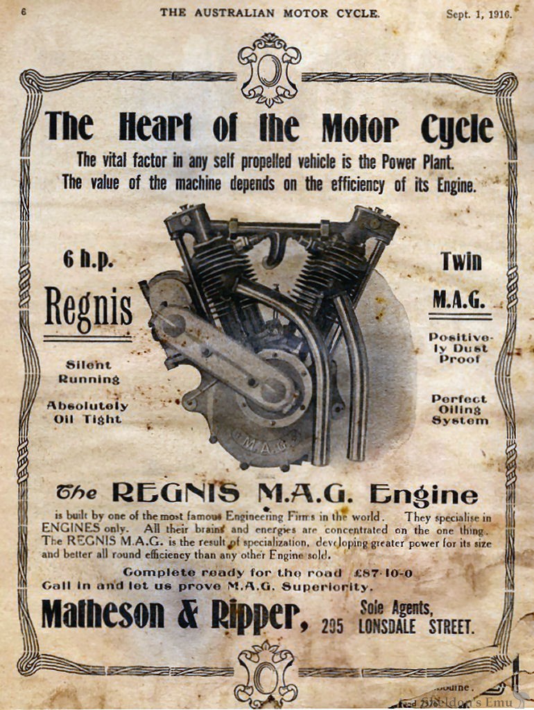 Originally named Lamande & McColl, the firm which marketed the Regnis changed its name several times before becoming Matheson & Ripper.