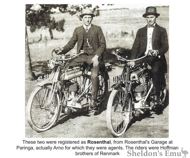Rosenthal's Garage at Paringa, South Australia, were agents for Arno motorcycles, which in 1913 they rebadged and offered as "Rosenthal".