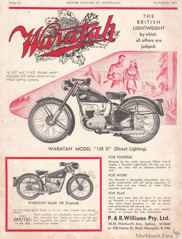 At the time, the Waratah was claimed to be one of the very few machines to be made in Sydney. The Waratah was the longest running of all motorcycle brands made in Australia.