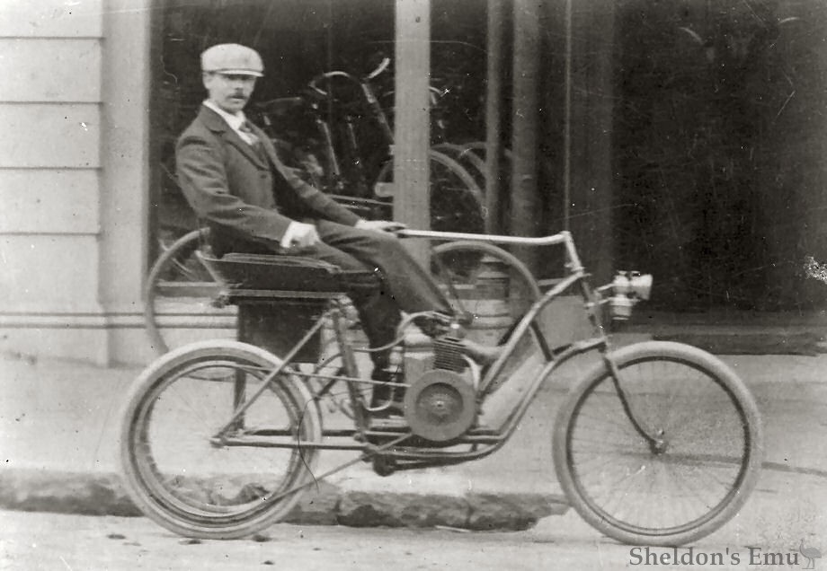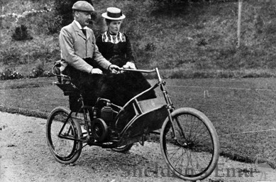 In 1900 he constructed a three-wheeled motor tricycle with a 2hp engine which drove the right hand rear wheel by belt. The front wheel was steered by tiller.