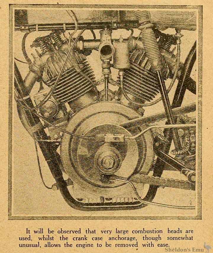 It will be observed that very large combustion heads are used whilst the crank case anchorage, though somewhat unusual, allows the engine to be removed with ease.