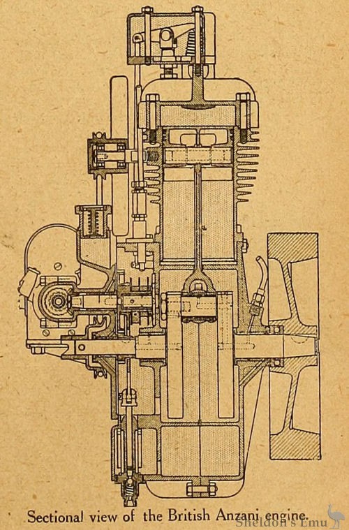 OF several engines which made their debut at the recent five hundred miles race at Brooklands, the British Anzani, mounted in a Zenith motor bicycle, gave a very promising performance.