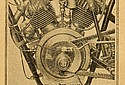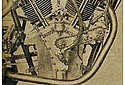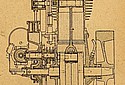 The drilled crankshaft is built up from the flywheel side, and feeds the cams via a small hole in the crank case casting, and the magneto bevel spindle through another channel. The flywheel side of the crankshaft is drilled, and conveys the oil to Ihe white metal big end bearing.