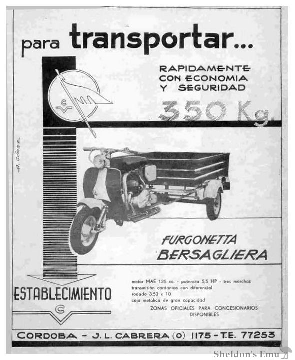 Furgonetta manufactured by J.L. Cabrera in Cordoba, powered by a 125cc MAE engine. It had a scooter chassis with leading link front suspension.