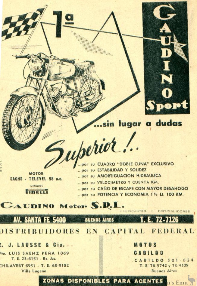 Gaudino Motor S.R.L., Av. Santa Fe 5400 Buenos Aires T. E. 72-7126