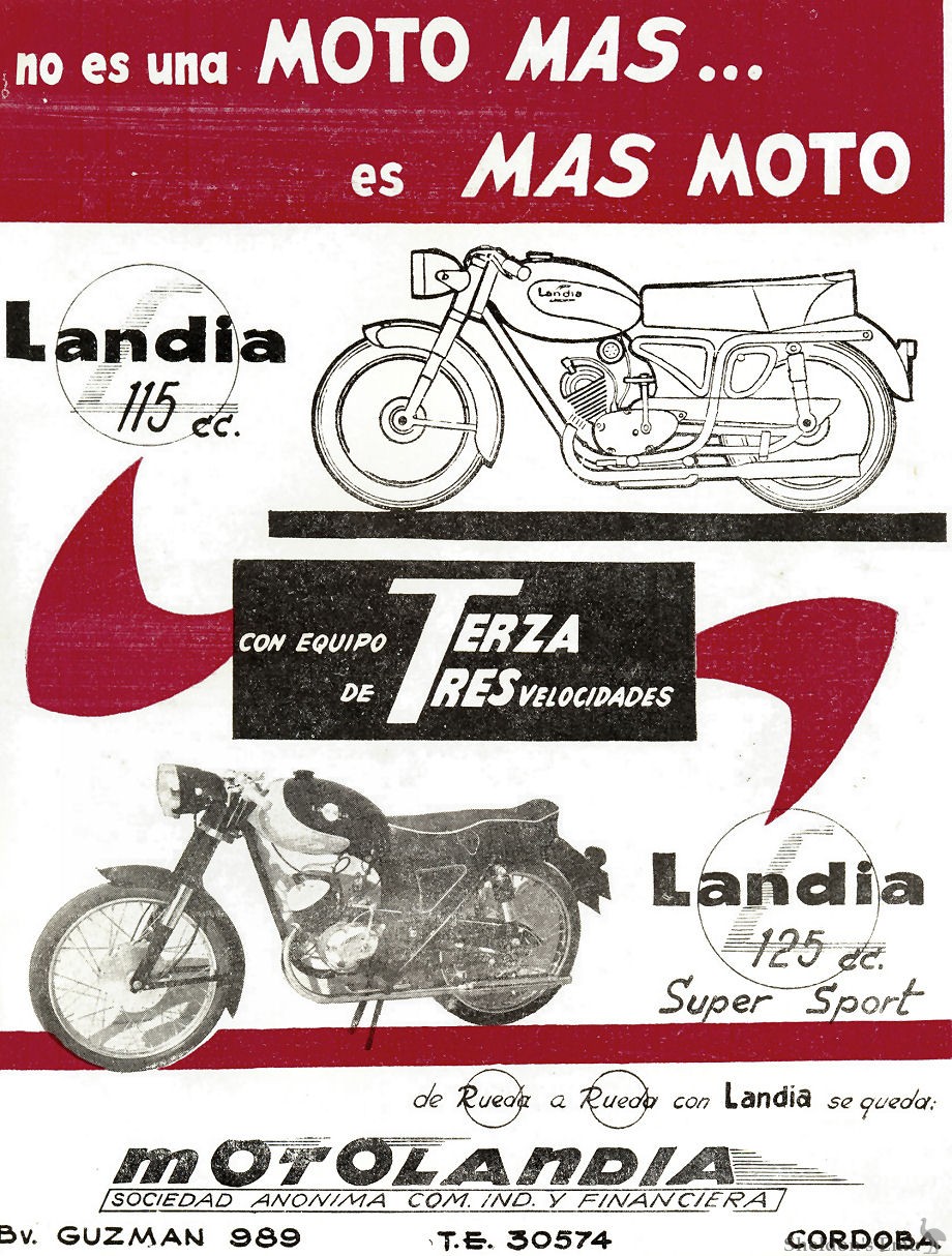 Marketed by Bv Guzman of Cordoba, models included Landia 115cc and Landia 125cc Super Sport. Both were two-strokes with telescopic forks and swing-arm rear suspension.