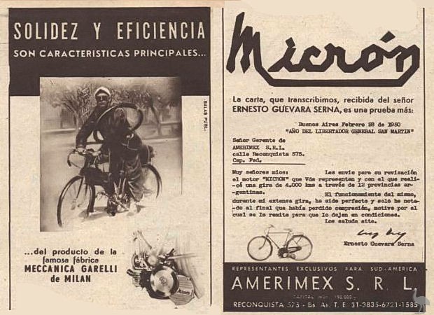 Well-known in Argentina for the trip that Ernesto "Che" Guevara made when he toured 12 Argentine provinces doing more than 4000 kilometers on a bicycle powered by a Micrón-Garelli engine.