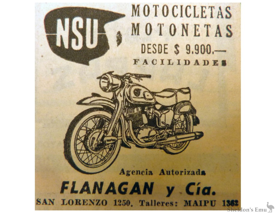 Manufactured under licence by Dory y Cia, the factory was in Beccar. In the 1950s and 60s they produced Quickly, Max and Super Max NSU motorcycles, and Prima scooters. They also built automobiles including the Prinz.