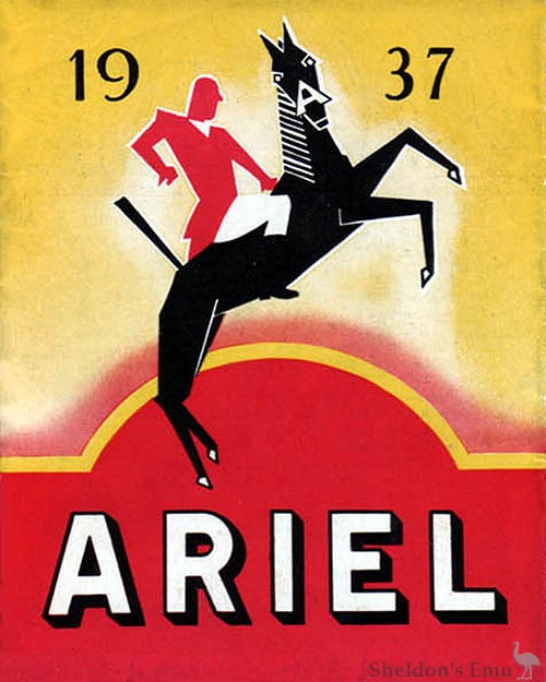 FINISH - "Three coats of finest black enamel on cosletized (anti-rust) base. All bright parts heavily chromium plated. Tanks are superbly finished according to specification. The "ARIEL" permanent enamel name badges on the tank and on the rear mudguard, give the whole machine an air of great distinction.