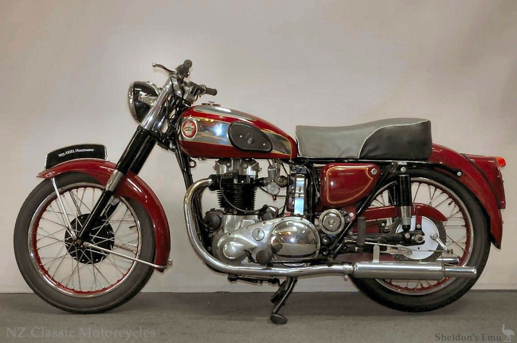 Equipment: Ariel design dualseat and pillion footrests. Trip speedometer 120 m.p.h. (180 km.p.h.). 7 ½ in. headlamp. 56 watt dynamo. 12 amp. Battery. Stop and tail lamp. Reflector. Electric horn. Tool box and tools. Tyre inflator.
