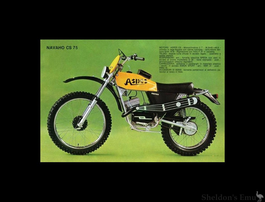 The first 125 Aspes MX bike was the Apache with a Maico engine, followed, in 1972, by the Hopi 125 MX. Shortly thereafter they began developing their own engines and using these Felice Agostini won the 125 class in the 1973 Italian Motocross Championship.