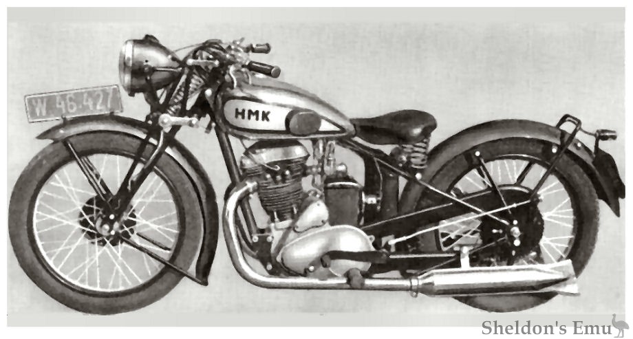 Karl Meixner's company built HMK motorcycles which, between 1937 and 1938, were fitted with 250cc up to 600cc JAP engines, mostly OHV. Their business was effectively destroyed following Hitler's invasion and the banning of British components. When the country returned to normality following the defeat of the Nazis new models were announced of which but a few prototypes were built, powered by 250cc and 500cc Bark single cylinder engines with a four-speed Getrag gearbox. At least one of these survives, a 250cc type OEZ.