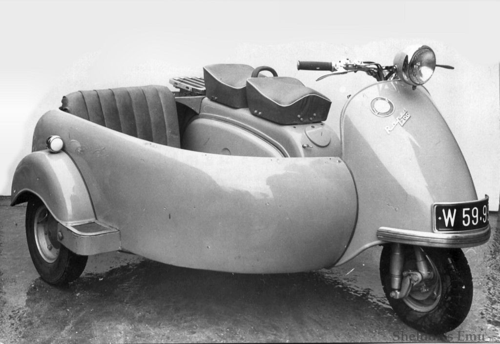 Richard Lohner and Ing. Kauba designed their first scooter in 1949, which appeared as the L98 in 1950. By this time Kauba had left to join Kosty. The L98 was followed in 1953 by the L200 and L200S, the latter capable of just over 60 km/h. Sidecars were available, and there was a model which had the sidecar integral - that is, fixed to the body of the scooter.