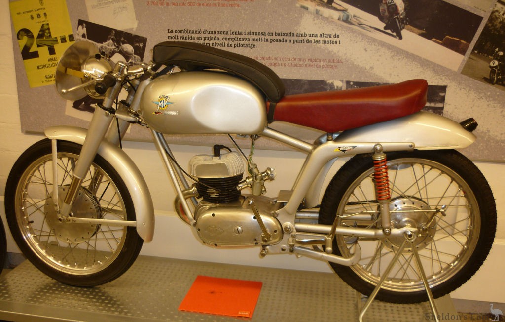Later that year, the Avelló logo was changed to that of MV Agusta on the engine covers and the fuel tank. The new Spanish MV's were presented at the 1957 Barcelona Salon.