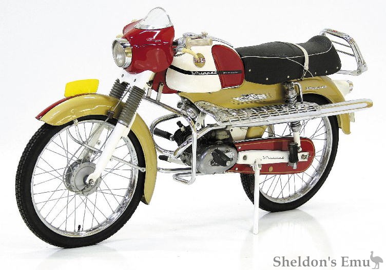Pecxel had a '63 Whippet with a three speed box known as the JLO-Piano. It's one of the earliest Whippets, and also the most desirable, not least for its colour scheme. It came in red/gold, dark-blue/gold and white/candy-pink.