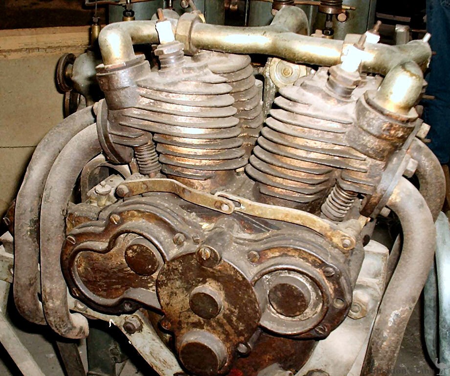 of around 750 cc, inlet valves by depression and fired by two magnetos.