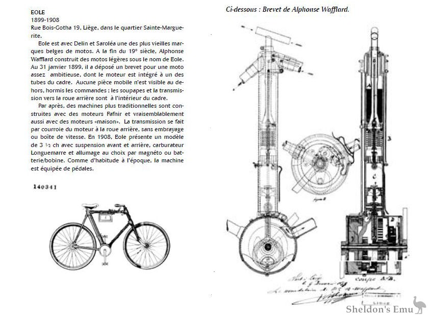 Textualmente me comentaba que: "Para su información los Wafflard fueron inventores que patentaron todo tipo de invenciones, entre ellas varias que se aplicaron en las Eole. Parece que fueron a la quiebra cuando un barco que contenía una importante partida de motocicletas para Argentina fue hundido antes que se completara el pago!!!"