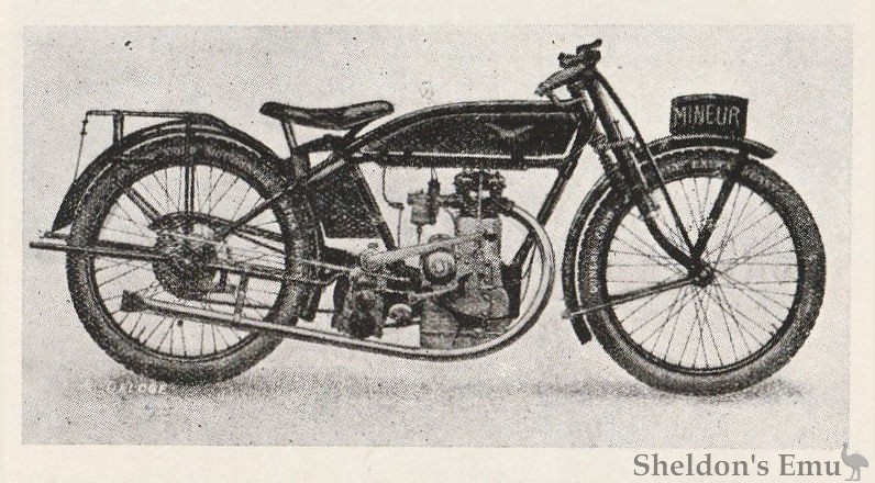 Paul Mineur built his motorcycles in the Leige factory from 1924 to 1928. Initially he fitted Bradshaw engines, and later used MAG, JAP and Sarolea engines of 348cc to 496cc in SV and OHV configurations. Output was rarely more than 12 to 15 units per annum.