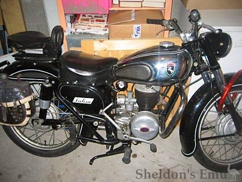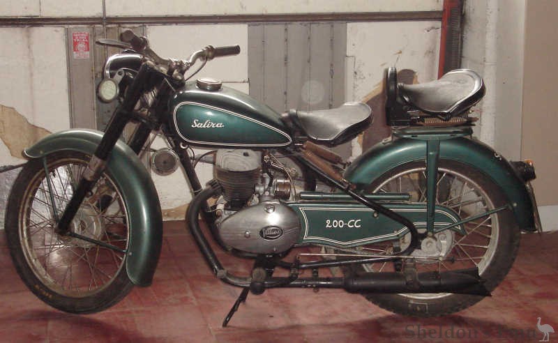 From 1955 until the early 1960s Salira assembled machines using Villiers engines of 98cc to 197cc capacity. They also offered a simplified configuration of the Lion Rapide 250cc JLO twin with tank, wheel rims and exhaust painted rather than chromed, thus lowering the price by a few thousand Belgian francs.
