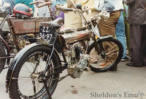 At least two examples exist, dated 1903 and 1904. They are of very different appearance, the 03 having a cylindrical tank and pedals, with the '04 having a narrow flat tank and sans pedales.