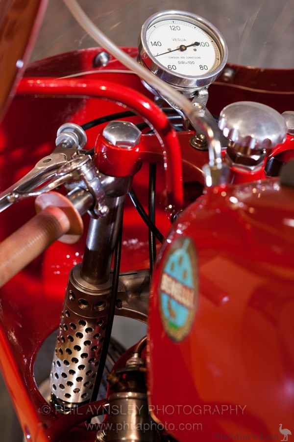 Silvio Grassetti briefly describes some of the characteristics of the Bialbero: "The 6 speed gearbox was not able to distribute the power of the engine in the best way, and also the clutch of the various gears was not easy for the poor agility of the system; as compensation, the bike had a good stability and this aspect allowed me to make some laps on the Monza circuit at the average speed of 175 km/h. With this bike I won in Argentina, in Salzburg, Abbazia and two other hillclimbs in Italy".