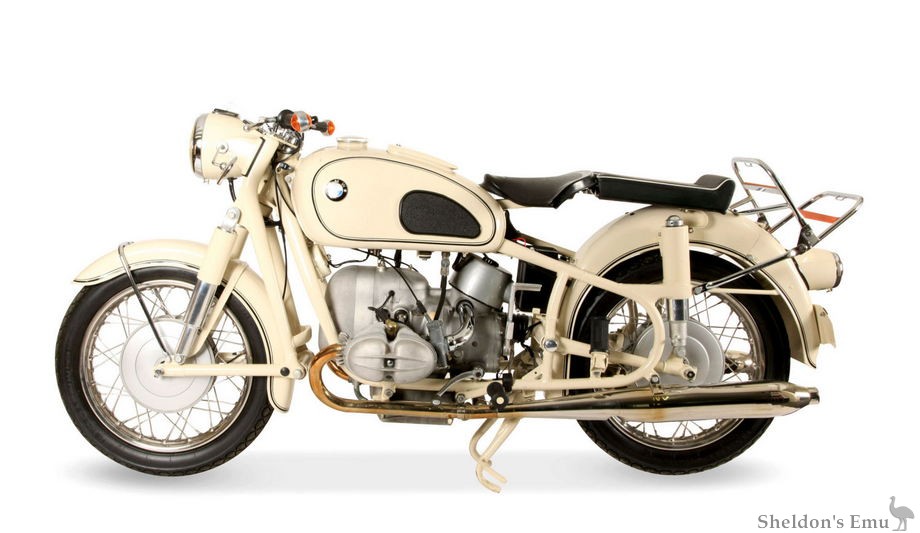 The 42hp R69S was produced from 1960 to 1969. These models were designed as high-powered, high-compression sport bikes, although the R69S came with sidecar lugs installed on the frame. The lugs were deleted from the telescopic-fork 'US' models.