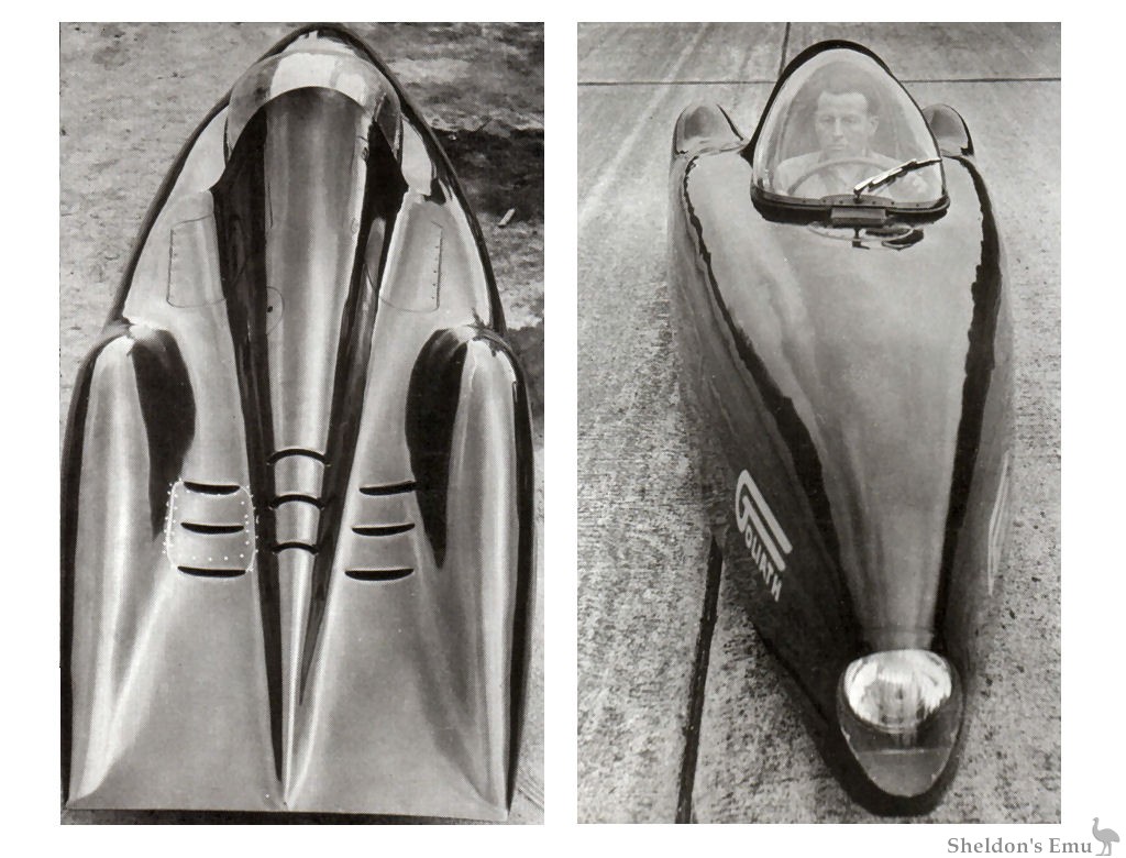 Postwar, Borgward was detained for some time due to his Nazi connections. By 1948 he was back at work, producing among many interesting machines a three-wheeled speed record car which reportedly took 38 records in France in the Sidecar Combinations category, beginning in August 1951 at Monthléry. The machine met with a dreadful accident at the Hockenheimring late in the year and the rider, Hugo Steiner, was killed.