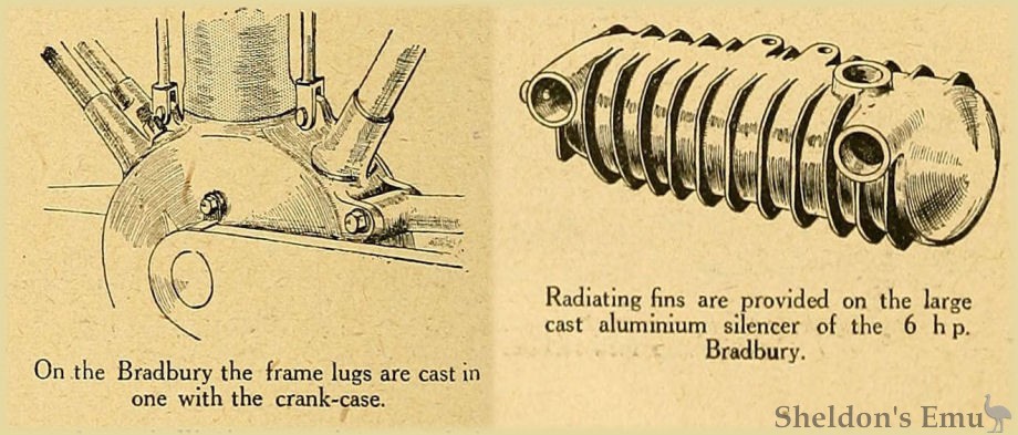 On the Bradbury the frame lugs are cast in one with the crank-case.