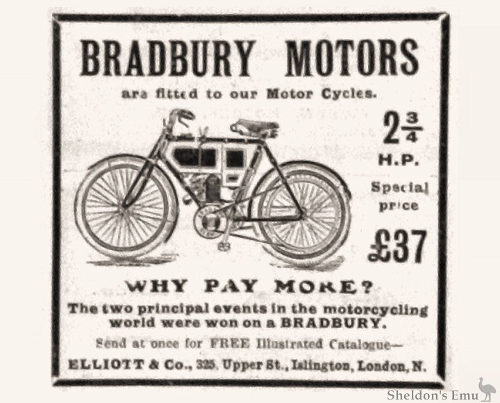 In 1904 they advertised motorcycles fitted with Bradbury engines.