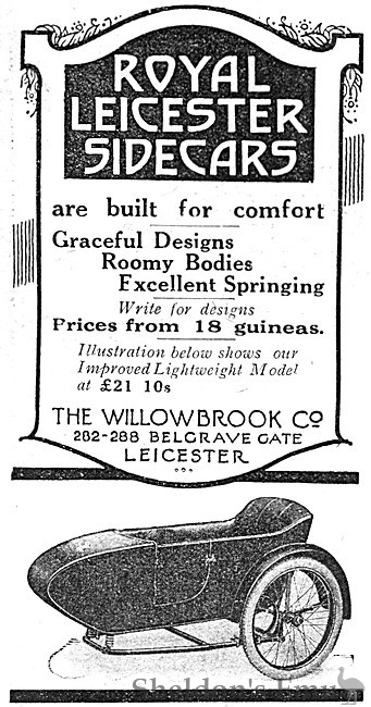 In 1919, the same brand was advertised by The Willowbrook Co., 282-288 Belgrave Gate, Leicester.