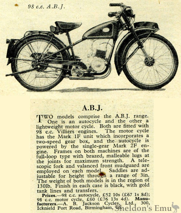 1950 Two machines were offered, both of which had a 98cc Villiers engine. One