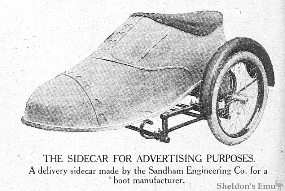 The name of the sidecar business in 1931 had been changed to Sandum Manufacturing Co., of 165 Pentonville Rd., Kings Cross, London.