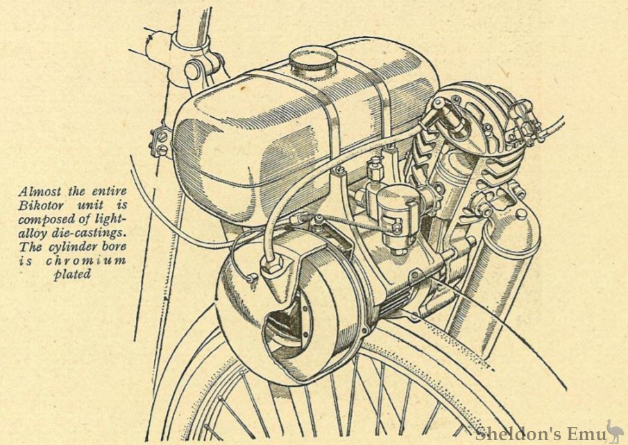 Bikotor was a cyclemotor produced in 1951. It was a cycle attachment that had its 47cc two-stroke engine positioned over the rear wheel, which was friction driven. To keep it lightweight, it was alloy constructed with a flywheel magneto and petroil lubrication. The fuel tank was strapped on top of the crankcase. Despite being neat and well made, it was not popular and the make soon disappeared.