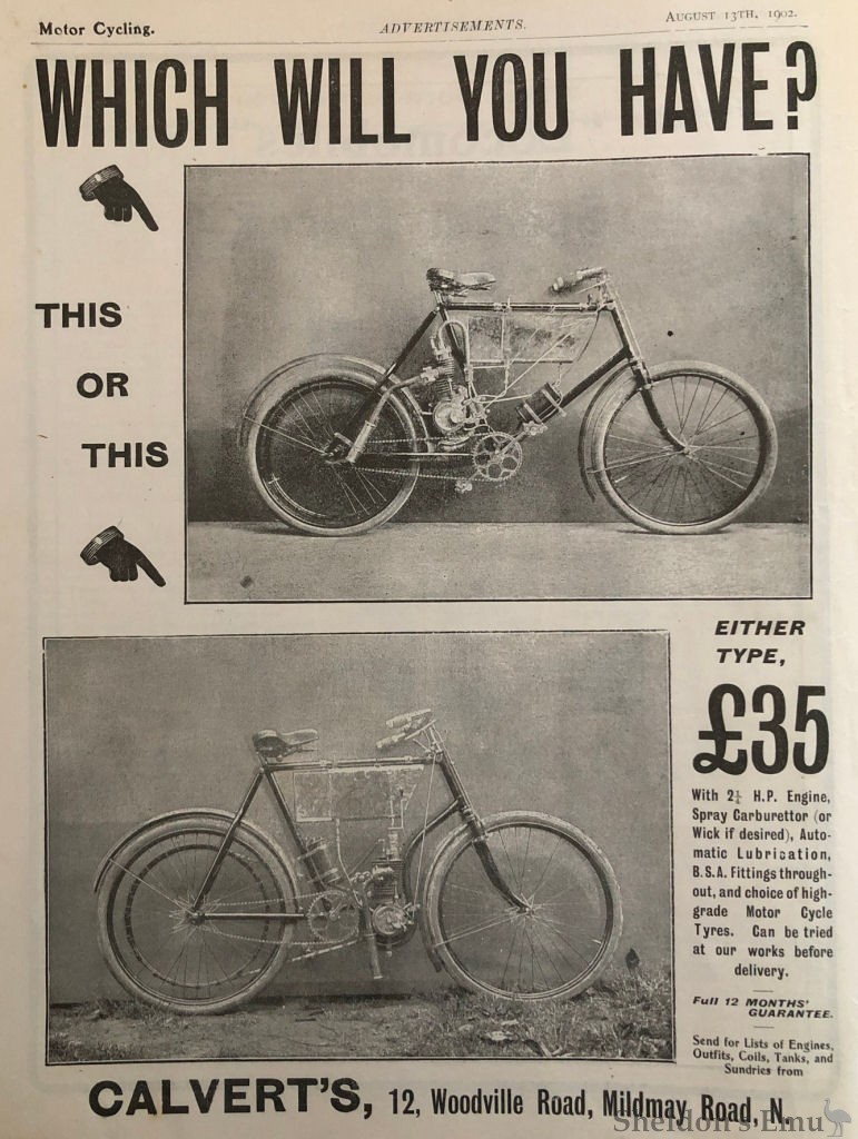 Calvert of Stoke Newington, London produced motorcycles from 1899 to 1904.