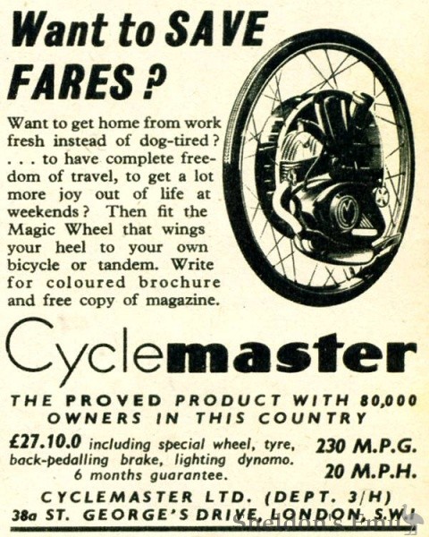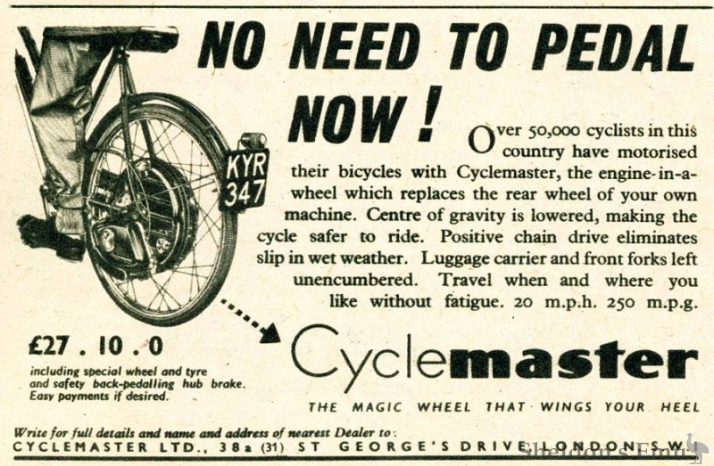 1953 A complete machine was offered along with another version called the Roundsman, built as a delivery bicycle with a large carrier hung over a small front wheel.