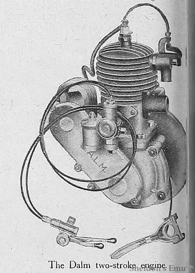 Following the success of the Levis two strokes, commencing about 1911, quite a number of imitations were designed and commenced to be marketed about 1913. One of these was the Dalm engine produced by J.C.Dalman and Sons of Birmingham. In England Dalm engines powered about a dozen makes of motorcycles of considerable obscurity at one time or another. Aurora, P&S, Hansan. R.W.Scout and Symplex were some of these. Production of the Dalm engines ceased in the financial slump of 1922.