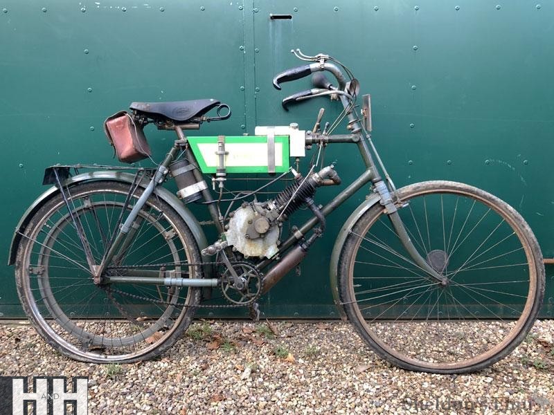 As it was built only that year, few of these machines would have been made and it would have been typical of the era in style. This basic motorcycle was fitted with a 1½ hp Minerva or 2½ hp MMC engine mounted inclined above the downtube. It had standard bicycle forks and the rear wheel was belt driven.