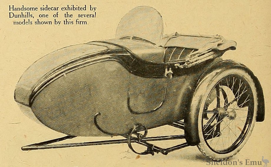 Handsome sidecar exhibited by Dunhills, one of the several models shown by this firm.
