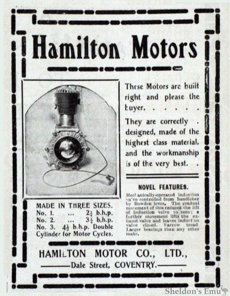Hamilton of Priory Works, Dale Street, Coventry produced motorcycles from 1901 to 1907.