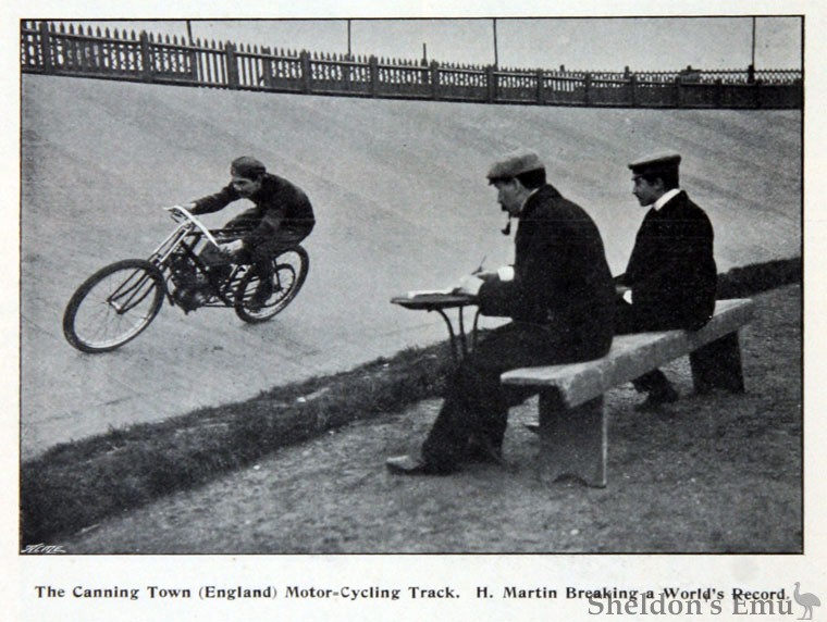 1923 Harry Martin attempted to break records at the Southern Counties Cyclists' Union meeting at Herne Hill in a Morgan cycle car and a Martin motorcycle.