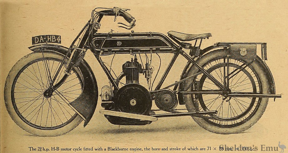 The 2 3/4 h.p. H-B motor cycle fitted with a Blackburne engine, the bore and stroke of which are 71 X 88 mm. = 348 c.c.*