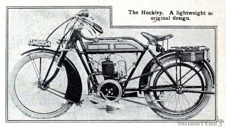 The Hockley is made throughout by the Hockley Motor Manufacturing Co. at Barr Street, Hockley, Birmingham, and retails at 28 guineas plus 10 per cent. With a two-speed countershaft gear the price is £6 extra.