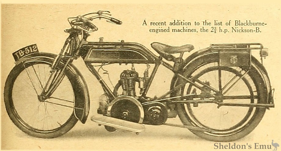 A recent addition to the list of Blackburne-engined machines, the 2¾ h.p. Nickson-B.