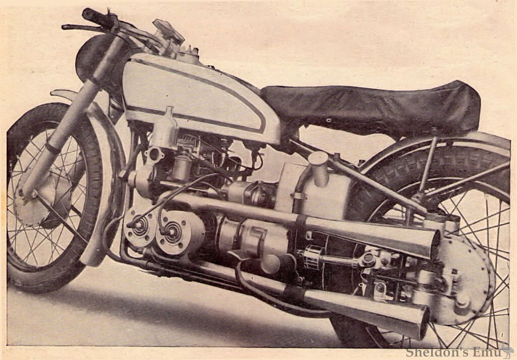He built his first motorcycle in 1942 during World War II while he was with Rolls Royce. It was a 500cc flat four superchaged two-stroke with shaft drive.