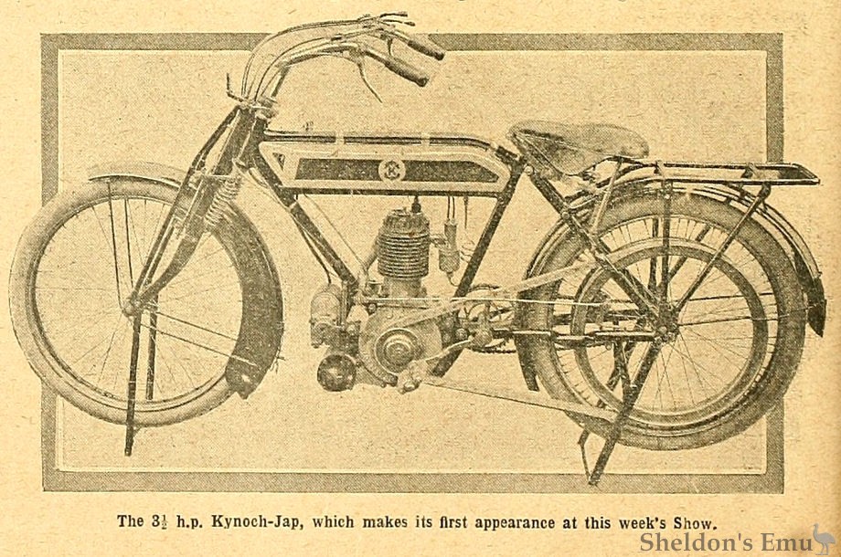 Messrs. Kynoch, Ltd., are showing a chain-driven 2¾ h.p. motor bicycle. The motor is