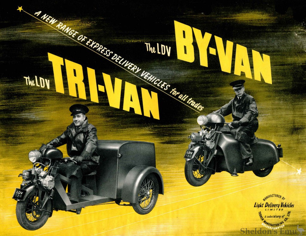 In the late 1940s the company was formed by Turner Manufacturing Co which operated from Lever Street where the two wheeled Byvan, costing £120 and the three wheeled Trivan, costing £150 were produced. Both vehicles were powered by a 148cc (or 168cc Tiger) two stroke Turner engine mounted above the front wheel giving a top speed of 30mph. Pre-production models were powered by the Royal Enfield 125cc Flying Flea engine.
