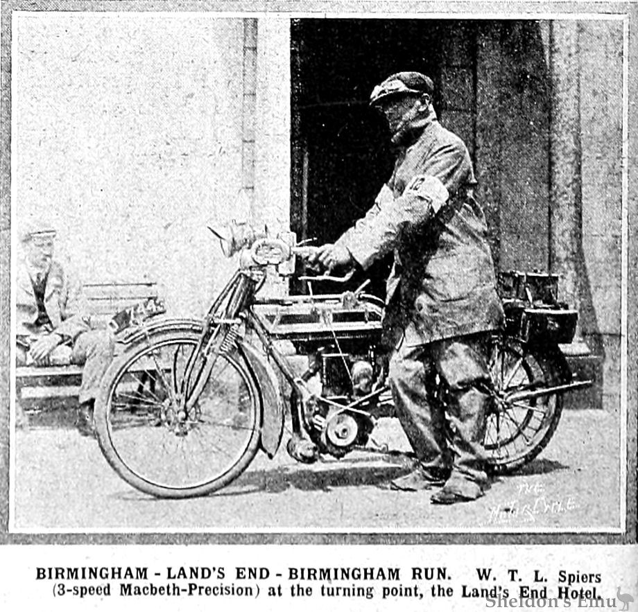 1911 At the late Olympia show, Macbeth was exhibited. Fitted with either their own or a Precision 3½ hp engine, they had a two-speed Roc gear option, belt drive and Druid forks.
