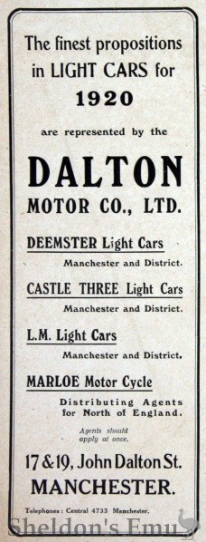 N.B. There was another marque of the same name made in the same period, see Marlow of Warwick.