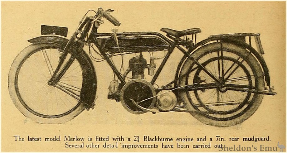 The latest model Marlow is fitted with a 2¾ Blackburne engine and a 7in. rear mudguard. Several other detail improvements have been carried out.
