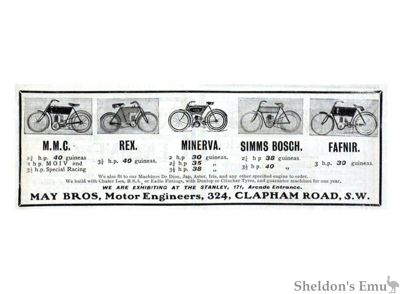 May Brothers of 324 Clapham Road, London produced motorcycles between 1903 and 1906.